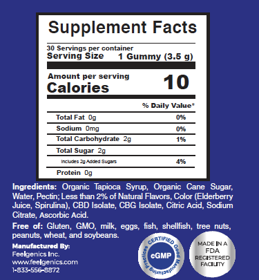 - Pectin: Feelgenics uses pectin, which comes from fruit, to achieve our gummy’s signature chewy texture. As such, our CBD gummies are vegan and vegetarian friendly.